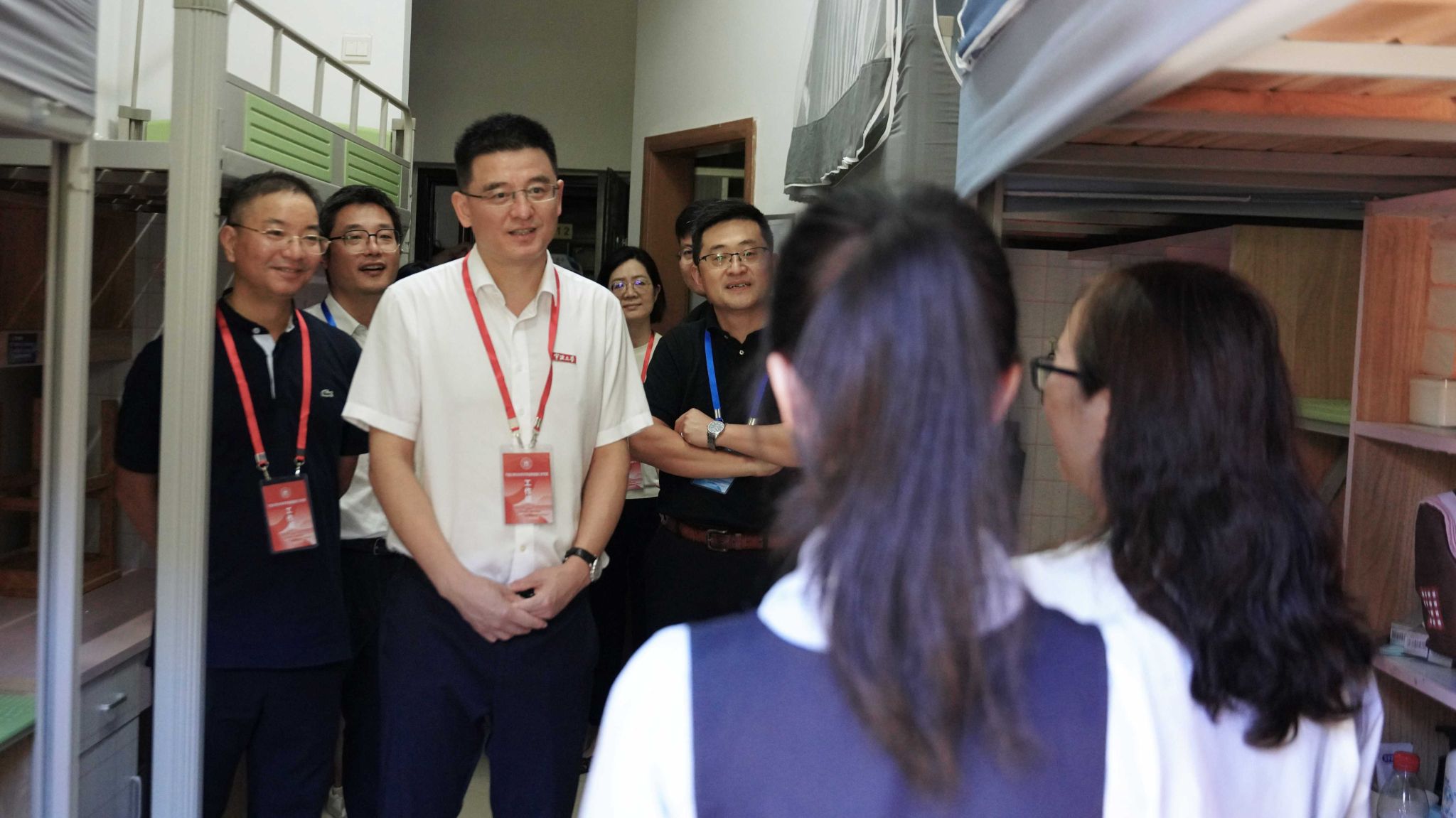 在梅山校区,副校长周青及有关学院和职能部门相关负责人来到党群服务中心和新生宿舍等地,仔细了解新生报到情况,查看数字化迎新系统运行状态,并慰问现场工作人员与志愿者。周青亲切询问同学们的家乡情况和入学体验,并勉励大家在校园中踏实学习,在广阔天地中挥洒青春。